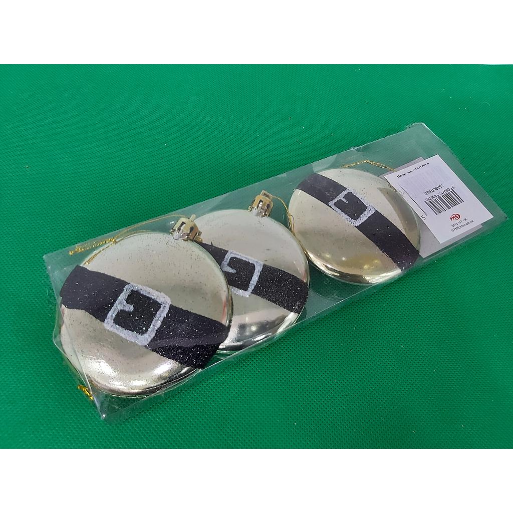 Snow White Set Of 3 Santa Belt Tree Trim Gold