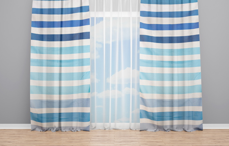 OYO Home SL FPR 7A New 240cm Blue White Stripes horizontal Curtains 280cm